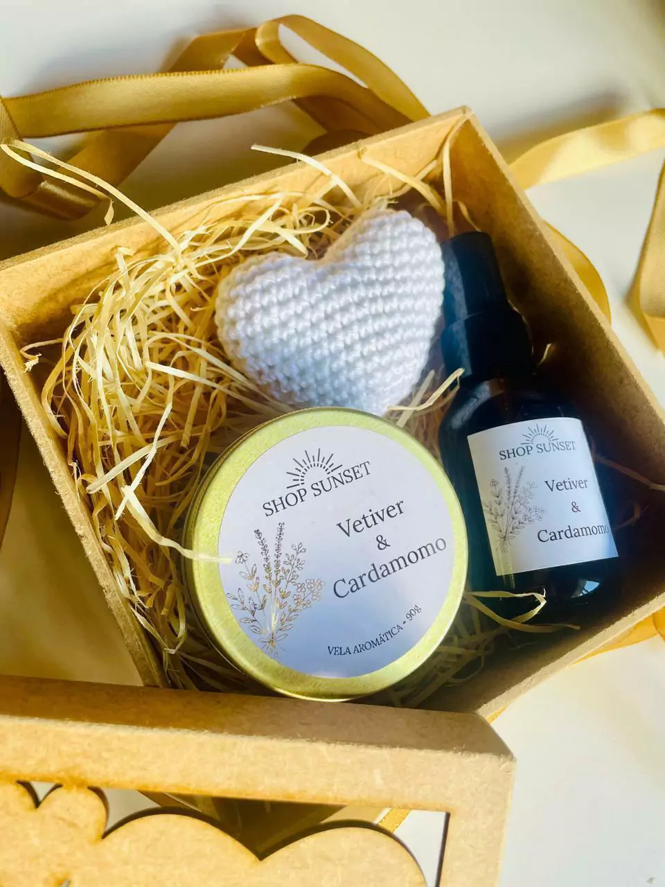 A Vela e o Home Spray Vetiver & Cardamomo da Shop Sunset possuem notas com toque amadeirado e marcante. Além de perfumar o ambiente, ajudam a melhorar a sensação de bem-estar. Trasmitem uma sensação luxuosa com notas olfativas especiadas e cítricas nas notas de saída, como a Sálvia, a Bergamota e o Cardamomo. As notas de corpo misturam os acordes do toque floral da Violeta, do Jasmim e da Lavanda. As notas de fundo são compostas por um aroma quente e envolvente do Cedro, do Vetiver, do Patchouli e do Agarwood.