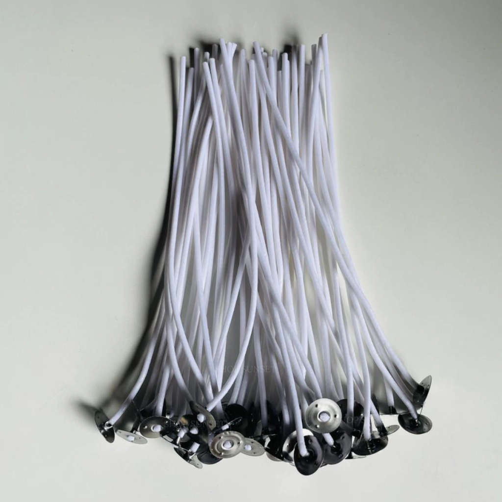 Produzidos com 100% algodão e já parafinados, oferecem uma queima estável e limpa, ideal para quem busca qualidade e segurança no processo artesanal. O ilhós metálico na base garante firmeza e posicionamento perfeito no recipiente.